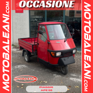 APE IN BUONE CONDIZIONI GENERALI, NESSUN LAVORO DA FARE, VERRA’ CONSEGNATA TAGLIANDATO, GOMME 60%, OMOLOGATO 1 POSTO, IMPIANTO STEREO NUOVO, PASSAGGIO DI PROPRIETA’ A CARICO DELL’ACQUIRENTE. CON 1 ANNO DI GARANZIA